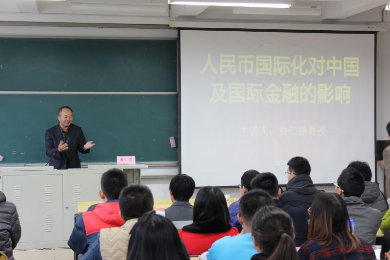 11月14日上午9:30分,原台湾开南大学商学院院长、台湾政治大学经济学系主任黄仁德教授,应邀分别在我校舜耕校区和圣井校区作了题为《人民币国际化对中国及国际金融的影响》的学术报告。这场报告会在B3205教室举行,我院院长、博士生导师宿玉海教授主持了报告会,并由金融六班委员会主办,金融六班全体学生参加,金融学院2014级、2015级各班部分学生也都积极参加。