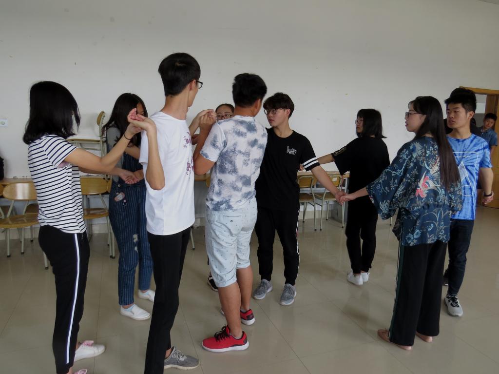 本次活动共有2个团队参加,每个团队由十名成员组成,活动分为“破冰热身”和“团队成长”两个部分。活动伊始,两个团队进行了第一部分的马兰开花和青蛙跳水游戏,随着游戏的进行,现场气氛逐渐活跃,同学们的积极性逐渐提高,陌生感也随之消失,并为后续活动的开展奠定了基础,塑造了集体归属感。随后,两个团队进行了第二部分的活动,即参与了心有千千结和找零钱的游戏。相比于第一部分的游戏,第二部分更加具有挑战性,不但考察了同学们的观察力,而且更加注重团队协作能力。最后,由现场主持人进行了总结发言。